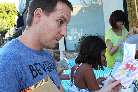 ↑お店を出したとたん砂絵キットを買ってくれた第一号のお客さん。