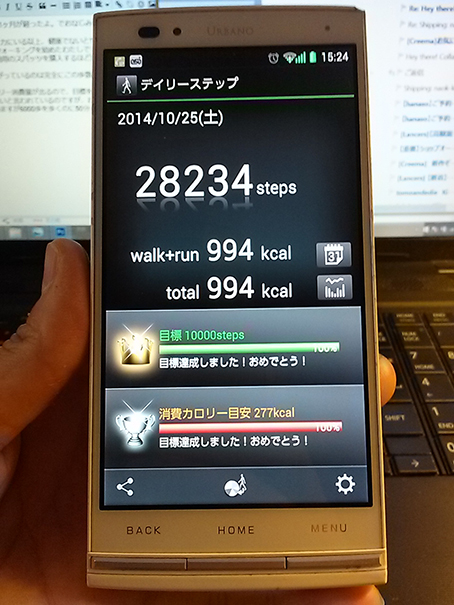 ちなみに、横浜に住んでいた時は駅まで20分(うち階段200段往復あり)かかっていたので、外出時は平気で6000歩いっていましたが、この携帯を買ってからの最高記録は、去年LAの野外フェスに行った時でした。