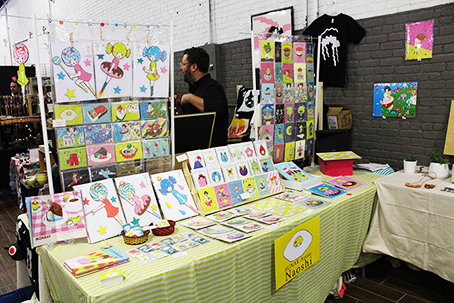 ブースメイトとやりとりして変更もあったりで大変でしたが、11時のスタートにはなんとか間に合いました。最初の1時間半はまったく売れなくて『やばっ!』と思いましたが、後半はたくさん人が見に来てくれてなんとか目標達成。一安心。
