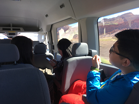 朝6時半にエントランスに集合し、バスが来るのを待機しておりました。なかなか来ないなーと3人で大きい観光バスを探しておりましたが、まさかの15人乗りのバンが到着!これー!?と動揺。笑