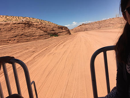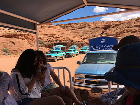 アンテロープキャニオンの中に入るために小さなバンに乗り換えます。