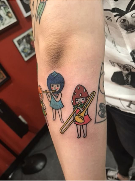 わたしの絵のタトゥーを入れた方から写真が届くことがちょいちょありまして、一挙まとめて掲載!その日限りとかではなく一生残るやつですよ。すごい。